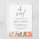 This cute Couples Baby Shower Invitation is decorated with watercolor woodland animals: squirrel, rabbit, racoon, bear, and fox.