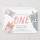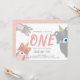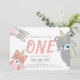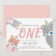 Woodland Animals White Pink Girl 1st Birthday Invitation