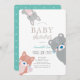 Woodland Animals White Teal Boy Baby Shower Invitation
