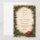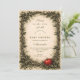 This charming baby shower design features an illustrated woodland storybook frame with twisting branches, delicate blossoms, soft greenery, and a whimsical red apple accent set against a warm parchment background. The vintage-inspired artwork and gentle earthy tones create a cozy, magical aesthetic that feels timeless and inviting, perfect for a storybook-themed celebration with a natural, fairytale-like charm.