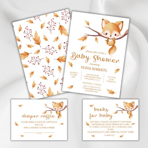 Adorable woodland autumn design featuring watercolor baby fox, autimn leaves. This design is gender neutral and can work for both baby girls and boys. You can add your own details very easily by using the template field.