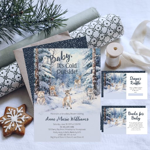 "Baby, It's Cold Outside!" and it's time to celebrating the upcoming birth of your sweet little one. If rustic, woodsy woodland scenery and precious little baby woodland animals are your style, then look no further than this snow-filled creation. Designed with your celebration in mind, these little guys are ready to cosy up to your Baby Shower.
