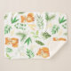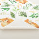 Woodland baby blanket with cute watercolor fox and forest leaves on a white background. This fox blanket can be customised with text and you can change the background colour.