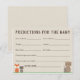 Use our woodland themed baby predictions cards to let the guests make their predictions for the baby. There are spaces to guess the birth day, birth time, weight, length,, hair colour, eye colour, and what you hope the baby gets from mum and dad. The woodland animals include a fox, bear, racoon, and rabbit.