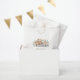 This design features adorable illustration of whimsical woodland animals: fox, bear, racoon, deer and squirrel