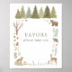 Invite your baby shower guests to take a favour with this woodland-themed sign, featuring baby woodland animals and pine trees.