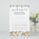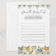 Woodland animals themed baby shower guess the baby food game card features a watercolor woodland illustration and watercolor greenery eucalyptus garland and elegant handwritten style font.