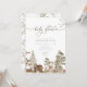 The ADAIR woodland baby shower invite design features a white background with a watercolor woodland scene with forest trees and woodland creatues form bears and wols to rabbit, raccoons, squirrels and deer, along with some woodland florals and butterflies, the wording "baby shower" in a script font in a muted olive green, with classic serif fonts in grey to add visual interest to your adventure awaits baby shower invitation. Personalise this woodland baby shower invitation by adding names, date, time, venue and other details for your woodland animals baby shower theme. An optional backside with a woodland pattern is included.