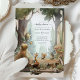 Introducing the Woodland Baby Shower Party Invitation! This adorable invitation features a charming woodland scene with a cute bear, butterfly, deer, fox, squirrel, racoon, hedgehog, and owl.