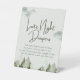 Elevate your baby shower party decor with our enchanting Woodland-themed Tabletop Pedestal Sign. Transport your guests to a whimsical world of natural beauty, where majestic trees and majestic mountains set the backdrop for your special celebration.