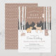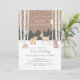 Celebrate the little one on the way with these adorable winter baby shower invitations! A sweet baby deer, a shy fox, a brown bear, raccoon, porcupine and wise old owl all join in the winter woodland with a soft brown background. The aspen trees are front and center while snow falls softly all around. Back has brown and white polka dot pattern. Perfect for gender neutral baby showers.