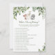Woodland Baby Shower What's Mummy Wearing Game 5x7