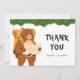 Woodland Bear Adventure Awaits Baby Shower Thank You Card. Cute gender neutral woodland baby shower stationary. Features cute and adorable brown bear on hiking with map and backpack with lush green foliage. Let's the adventure begin!