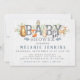 Blue and grey Woodland Lumberjack Boy Baby Shower Invitation with bear, racoon, moose, deer, owl and bunny.
