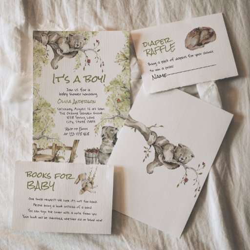 Woodland Boy Wild Forest Bear Animal Baby Shower Invitation