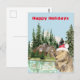 Woodland Cabin Lake Christmas Beaver Watercolor Postcard