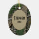 Tree bark and leaves, woodland camouflage design holiday photo keepsake for the hunter or fisherman. Keep the memories of the prize hunt or big catch. A treasured gift for any hunter or fisherman's Christmas tree.