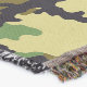 A quality printed throw has its advantages. This is a much finer weave throw than its loopier cousins, and though lighter, it is worth the investment for custom room accessorizing. The back is much prettier than the typical brown, and the fringe on the long sides very vivid, the selvage nicely done. Before photographing, I washed the throw in cold water, delicate, with a thicker woven throw the same size. On tumble dry low, this throw was dry in half the time as the other. This is a very practical quality if you use throws for furniture covers or to wrap up in frequently. The sleekness of the fabric makes it a great layer for accenting or protecting without the feeling of sitting on too much stuff. Perfect for napping or when you feel a light chill coming on. The color printing is beautiful and on this fabric, matched the design and color of my Photoshop image. This is an advantage for blending room fabrics and colors. The fringe on the short sides prints the colors from the design image and therefore varies from the side fringe. I streaked a white fractal line through the plaid pattern to give the illusion of weaving. This printed as crisp as an illusory thread, and put some white in the short side fringe, showing another advantage of print vs loomed- for artistic purposes, line lines, detail, and color integrity can be planned and preserved. My loomed throws have color limitations and more of a needlepoint texture. Print throws reproduce an exact image. The throw felt a little stiff straight out of the package, but this went away in the first delicate wash. Of course I searched the wash water for ink or bleeding and there was none.