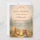 A heart-melting woodland design featuring a sweet gathering of forest friends beneath a soft storybook canopy. Fox, fawn, bear, raccoon, and bunny sit together in a warm autumn meadow framed by gentle trees and vintage parchment tones. The earthy palette and delicate botanical details create a cozy, nostalgic feel—perfect for a nature-inspired celebration. Fully customizable to make it uniquely yours.