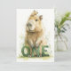 This sweet first birthday invitation features a watercolor capybara holding green “ONE” letters, painted in a soft woodland style. The back includes matching watercolor details with space for your party information. A gentle and charming design for nature-inspired celebrations.