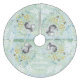 Blue green and brown earth tones Woodland Creatures Fairycore Cottagecore Squirrel Christmas Tree Skirt. Featuring acorns, arrows, flowers, twigs and other rustic whimsical woodsy folksy elements,