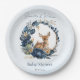Woodland Deer Blue Flowers Boho Leaves Paper Plate