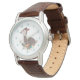This pretty watch has an image of a resting fawn deer at the centre. The fawn lies just behind a floral antler design. Colours include fawn brown, pink, orange, and teal. The teal numbers make the watch easy to read.