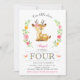 Woodland Deer Girl Floral 4th Fourth Birthday Invitation