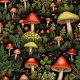 Whimsical mushroom illustrations nestled among wildflowers and moss
