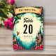 This elegant fairytale-style wedding table number is perfect for a modern wedding. The retro design features a vintage enchanted forest, a castle illustration, and black calligraphy on a storybook-themed background.