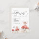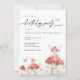 Birthday invitation featuring an arched frame of watercolor mushrooms. Customise with your information. Click "click to customise further" to change the font style, size or colour.