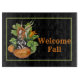 Welcome the Fall season with this whimsical watercolor illustrated woodland harvest elf / nymph perched on large pumpkins on black background with customisable orange text