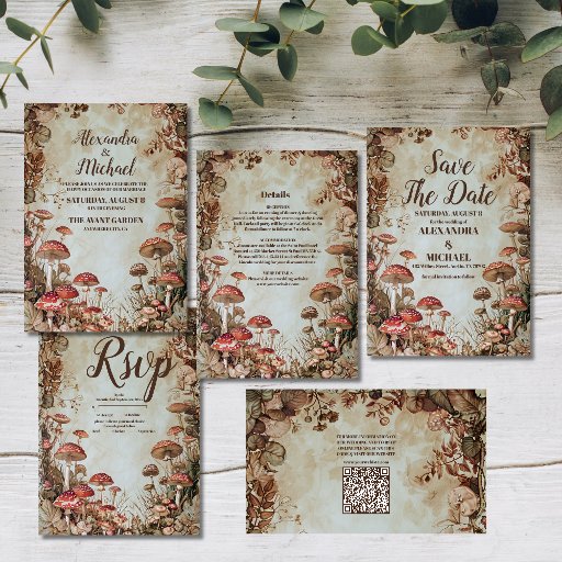 Woodland Fall Watercolor Mushroom Wedding Invitation