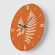 Woodland Fern Pattern, Pastel and Deep Orange Large Clock