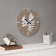 Clock in a woodland fern silhouette pattern adapted from vintage botanical illustrations, digitally rendered and colored, in taupe tan and white