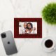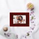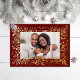 Real foil greeting is editable. Edit and customise to change the name, year, and fonts, and foil colour. Customise further to add more text or more photos to the back side. Original illustrated frame of winter foliage.