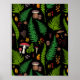Hand-drawn fern, fungi, berries and bugs, seamless pattern