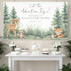 “Let the Adventure Begin!” Woodland-Themed Baby Shower Horizontal Banner. Celebrate your baby shower with this sweet woodland-themed horizontal banner, featuring a charming watercolor scene with forest friends—a deer, fox, raccoon, mouse, and hedgehog—gathered in a peaceful meadow with tall pine trees.