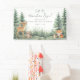 The text is centered along the banner in soft gray, using a graceful mix of handwritten script and classic serif fonts. The simple, clean layout pairs beautifully with the rustic woodland backdrop, creating a warm and inviting touch for your celebration.