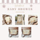 Celebrate in cosy woodland style with this adorable baby shower design featuring a fox, bunny, and bear surrounded by pastel balloons, butterflies, and delicate daisies. The soft watercolor details and warm rustic tones create a charming, nature-inspired look that’s perfect for welcoming a little one.