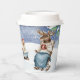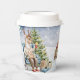 This adorable cup features a watercolored woodland scene with forest animals enjoying winter drinks in the snow.