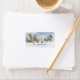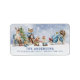These adorable Christmas return address labels features a deer, fox, bear and two mice all enjoying the winter snow. On the back, there is a blue background with falling snow.