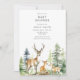 Create your own personalised baby shower invitation featuring simple minimal design and watercolor woodland forest accent.