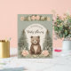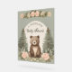 This adorable woodland forest design features a cute brown bear surrounded by blush florals and trees.