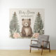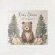 This adorable woodland forest design features a cute brown bear surrounded by blush florals and trees.