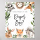 Give your guests a lovely direction with our woodland forest animals guess what's in the diaper bag sign, featuring watercolor greenery eucalyptus garland and elegant handwritten style font.