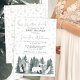 Forest pine trees with woodland animals and moon with the stars night gender neutral baby shower invitation in theme adventure awaits.