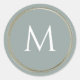 This set of 20 small 1.5" round monogram envelope seals feature a sage green background surrounded by a faux gold border with a white monogram initial.