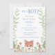 Woodland Fox Baby Boy Script Floral Baby Shower Invitation
