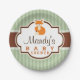 Woodland Fox; Orange, Sage, Brown Baby Shower Paper Plate
